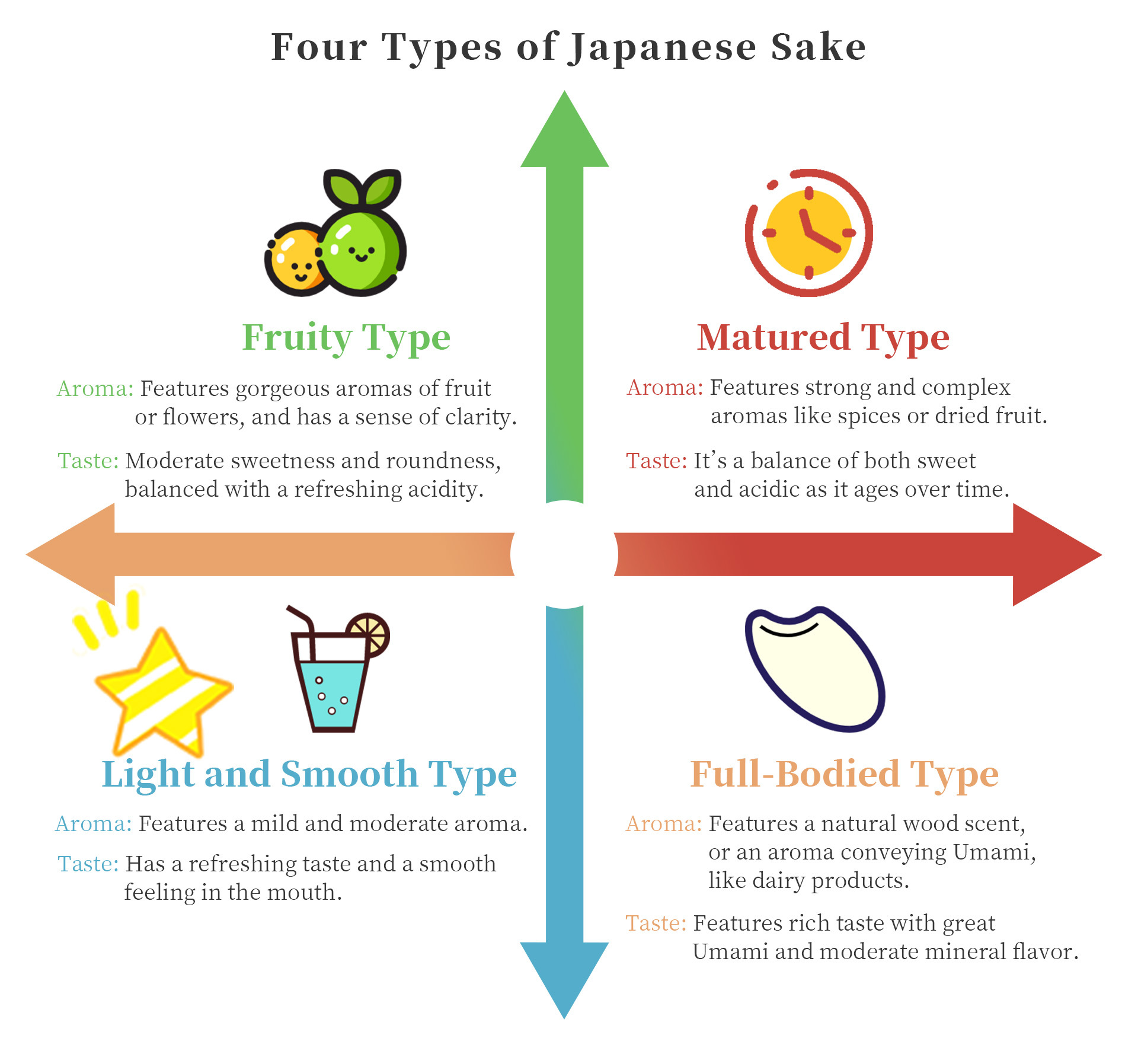 As soon as you open the bottle, a fruit aroma similar to white wine wafts out, as if the sweetness of fresh fruit had melted directly into the sake. The unique bubbles of unfiltered raw sake then unfold in your mouth. The characteristic of this sake is the harmony between refreshing acidity and sweetness, presenting a clear flavor. Please enjoy this refreshing sensation.